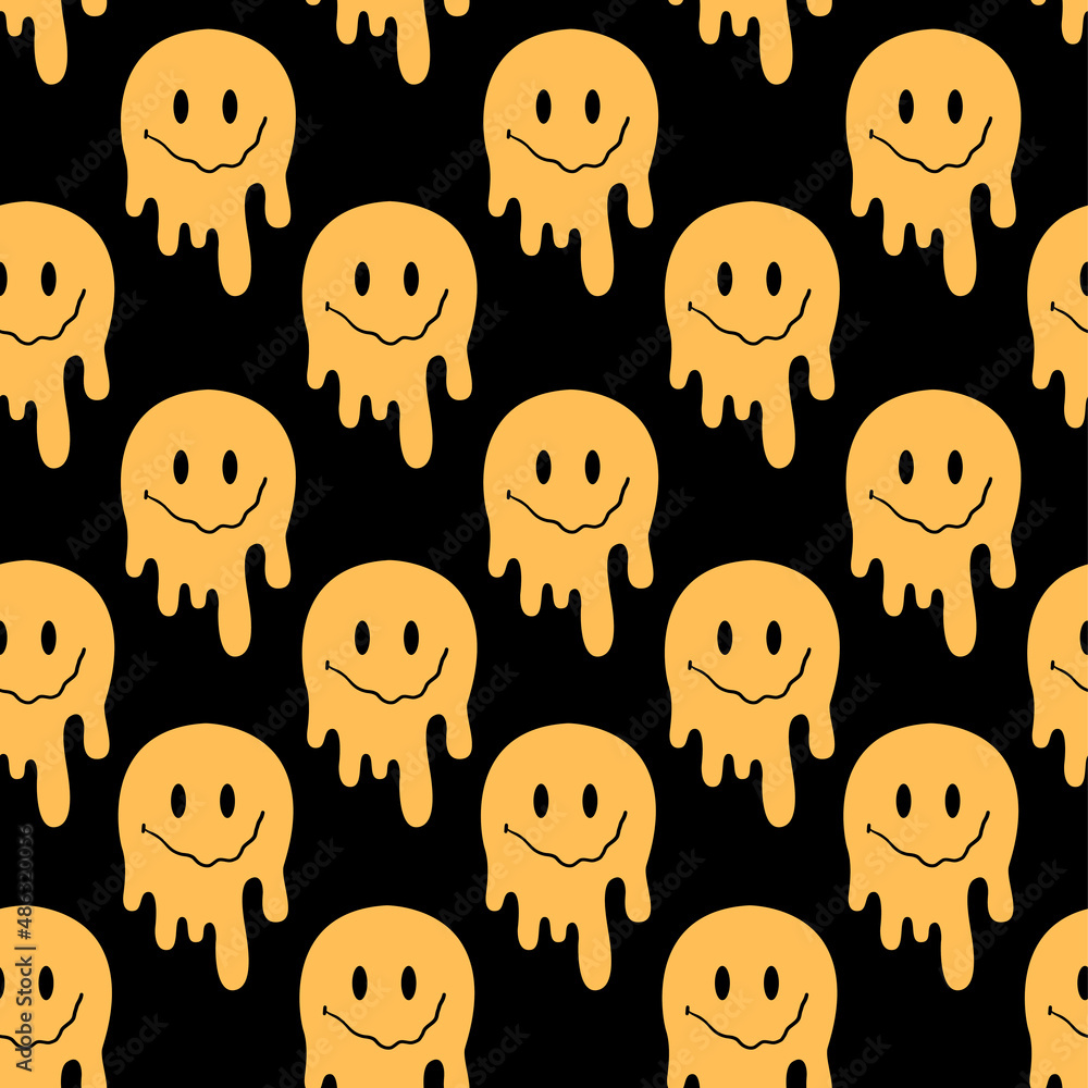 Melted Smiley Faces Trippy Seamless Pattern Illustration Of Retro Psychedelic Distorted Emoji Hippie Style Vector Wallpaper Stock Vektorgrafik Adobe Stock